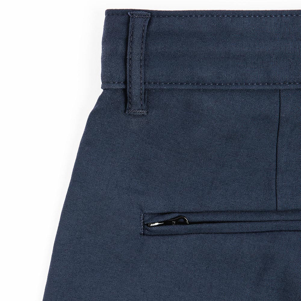 A refined silhouette doesn't just happen by accident. The back pocket conceals more than it reveals. Hidden beneath the double piping, the zipper sits neatly out of view, preserving the line while keeping your belongings secure. The lower part of all pockets is finished with mesh fabric that allows water to pass through easily. This design is built for spontaneous swims without drawing attention. Everything is exactly where it should be.